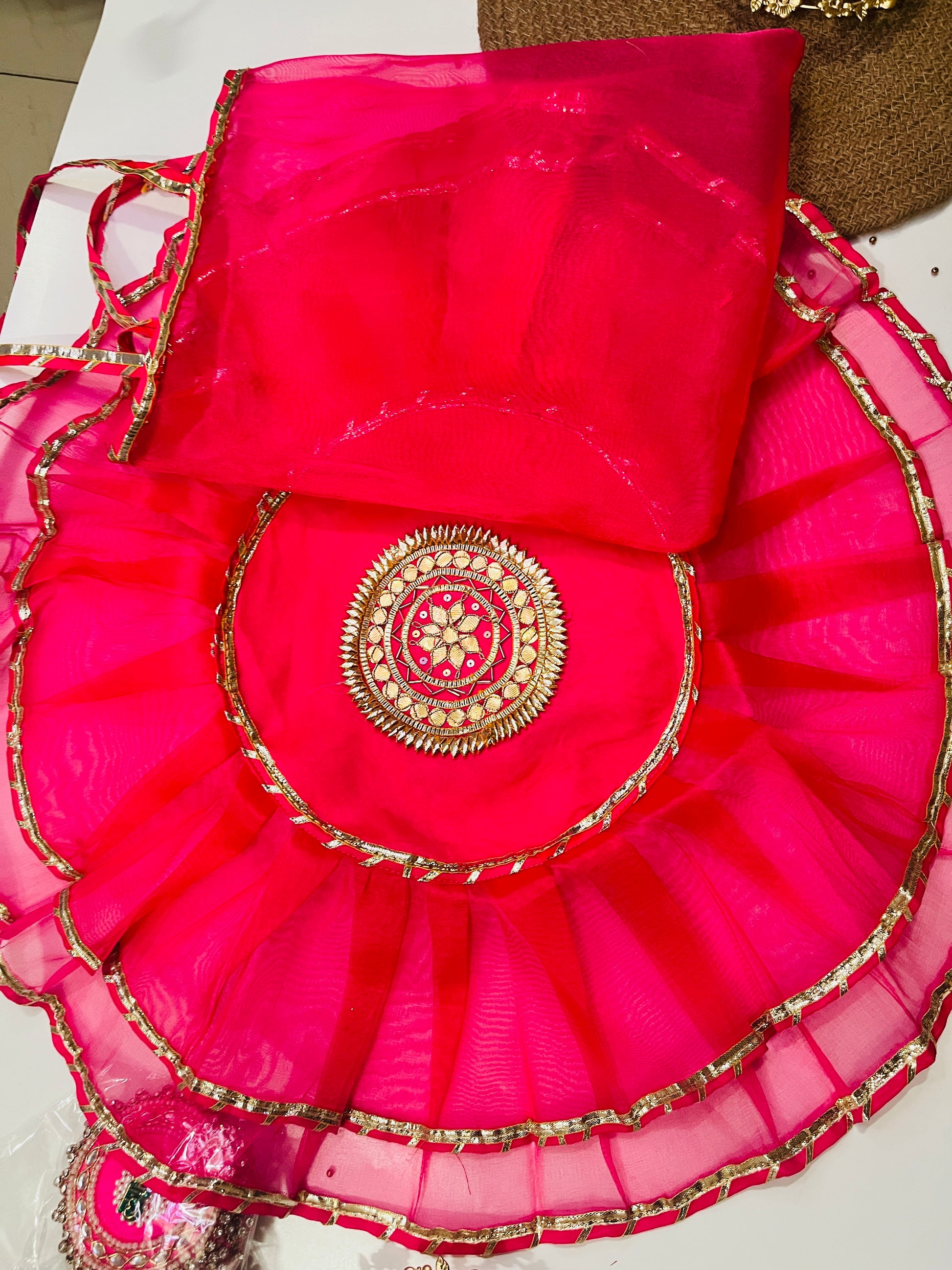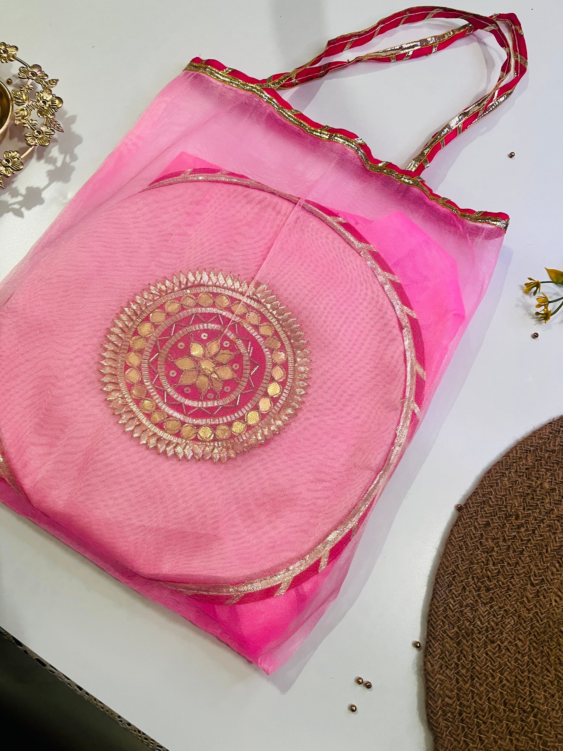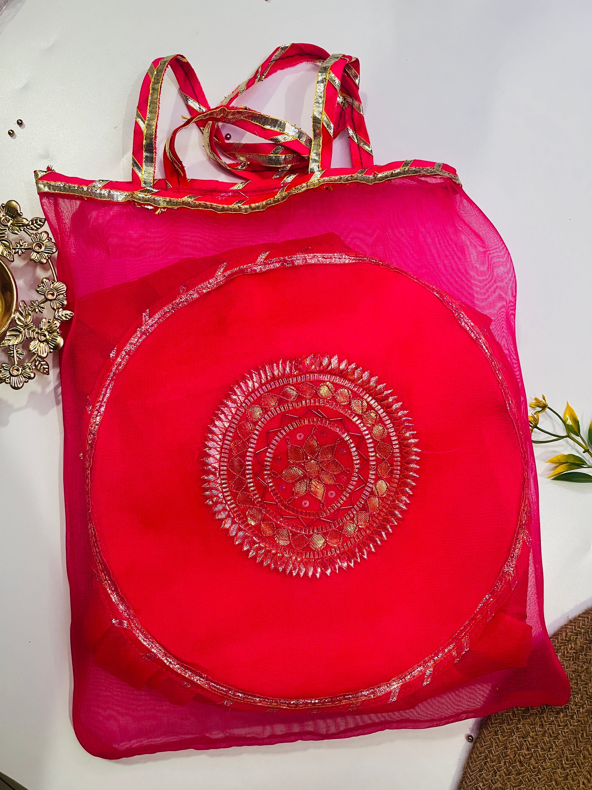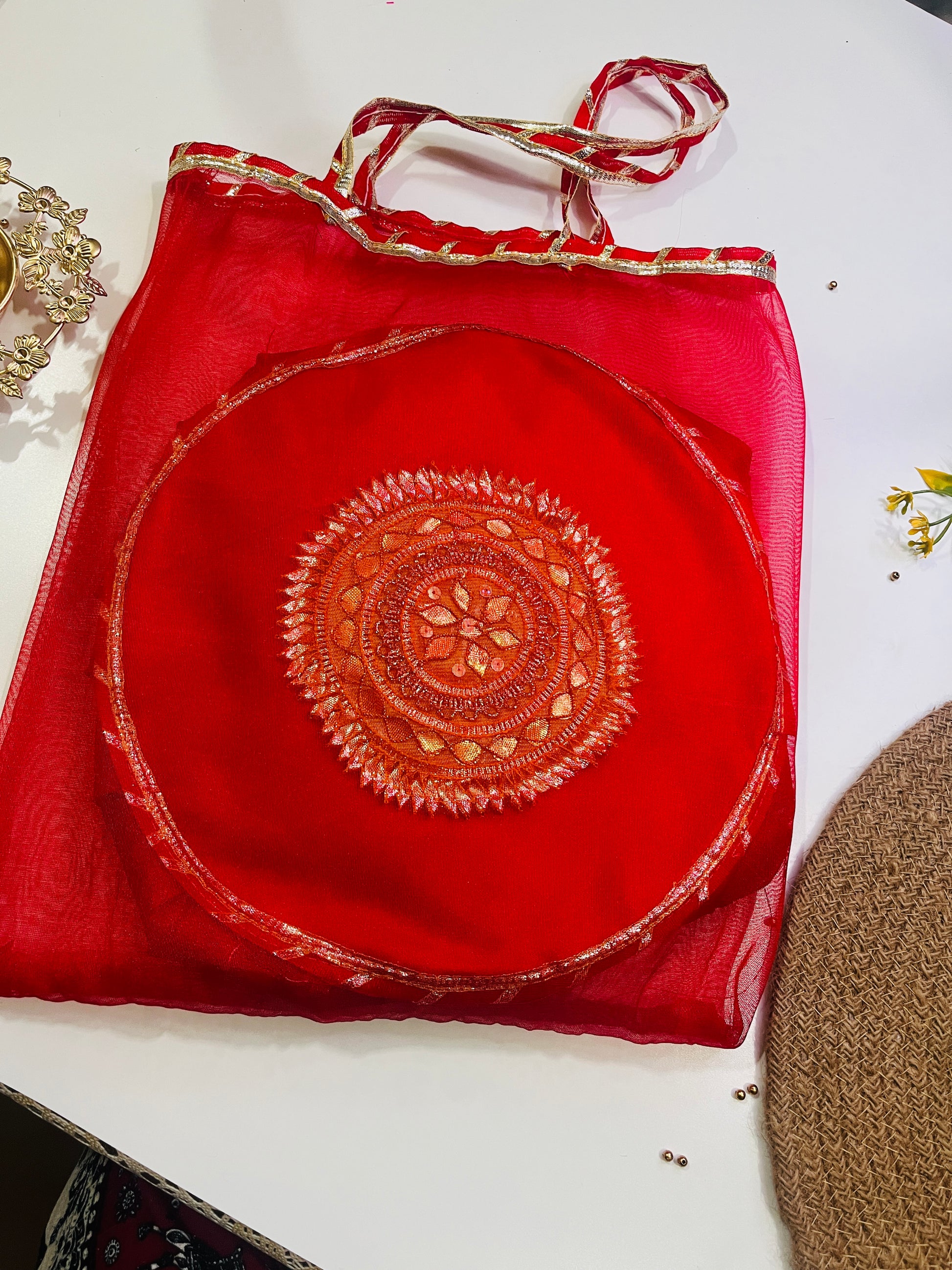 Enhance your pooja rituals and festive celebrations with our handcrafted Thalposh Collection. Made with premium organza fabric, zari embroidery, and gota patti borders, these covers are designed to protect and adorn your thali with beauty and devotion.